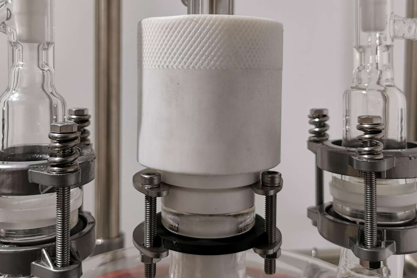 与物料接触部分全部采用高硼硅玻璃(膨胀系数3.3)和聚四氟乙烯材料,性能稳定不易与物料起化学反应,使用方便安全。