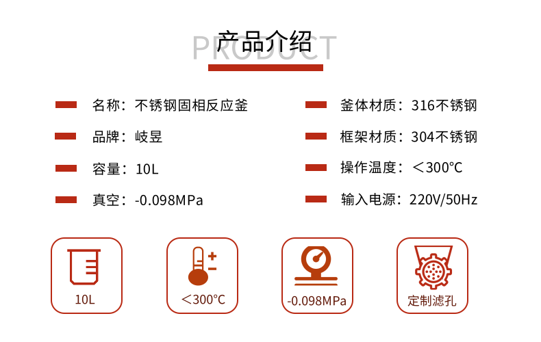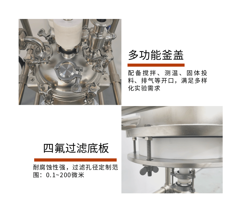 本款不锈钢多肽固相合成反应釜,以316不锈钢为核心主材,经过电解抛光处理,防腐耐用。四氟过滤底板,拆卸方便,且可以更换不同孔径。该反应釜可用于搅拌、抽滤、多肽合成、结晶、裂解等实验工艺,实用性极强。