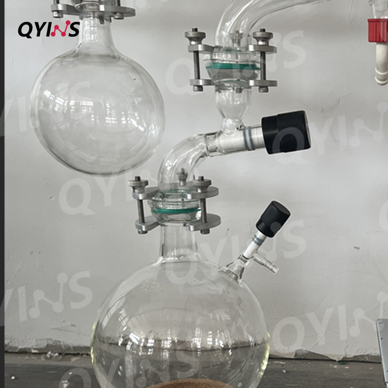 2.高透明度和高同心度,内置蛇形玻璃盘管冷凝器配套316不锈钢搅拌框,结合四氟刮条