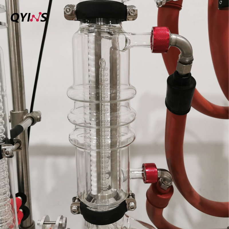 高同心度和高透明度,内置蛇形玻璃盘管冷凝器配套316不锈钢搅拌框,结合四氟刮条。