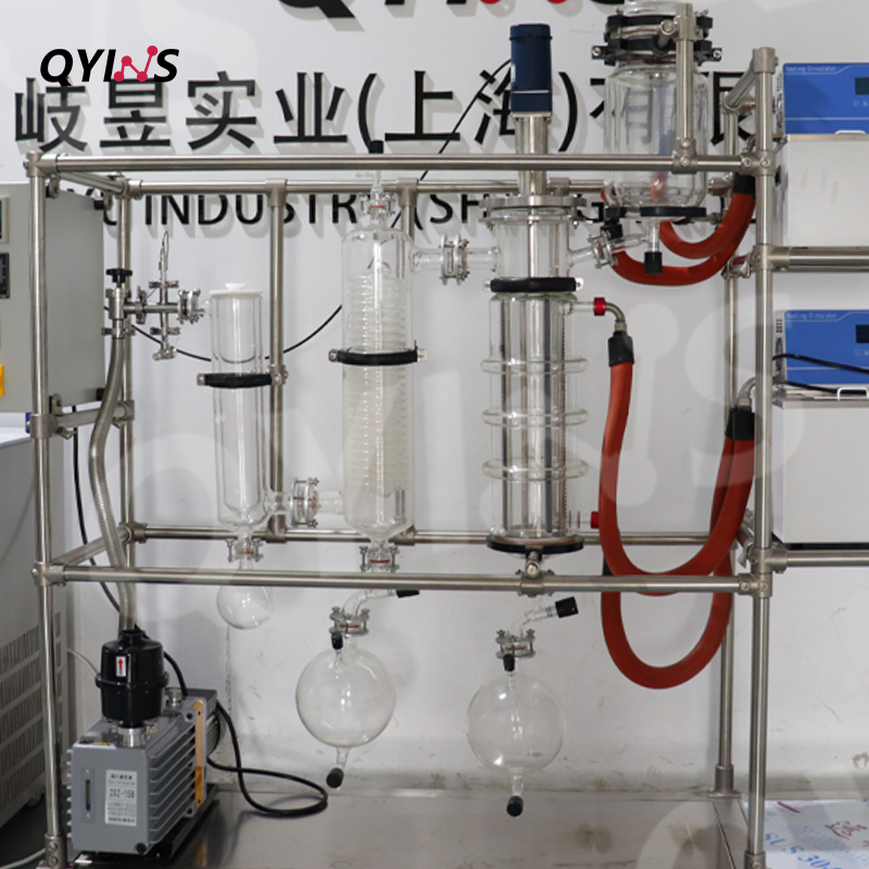玻璃薄膜蒸发器是一款在化工、制药、食品等行业中发挥关键作用的蒸发设备,凭借其独特的设计与性能优势,备受用户青睐。物料经进料口进入蒸发器后,刮板迅速将其刮成均匀的薄膜,紧密贴合在加热的筒体内壁。由于液膜极薄,传热面积大幅增加,物料在短时间内便能吸收大量热量而迅速蒸发。