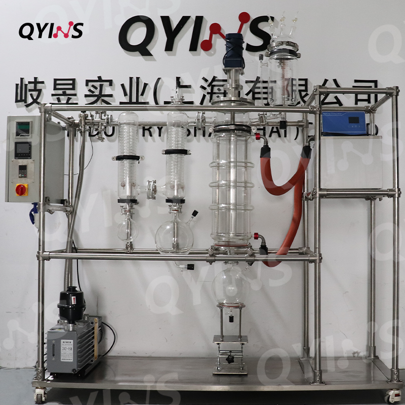 玻璃薄膜蒸发器0.1平方~0.5平方可选,在绝对真空条件下稳定运行,整个蒸发筒体内壁成膜的蒸发面可维持较高的真空度。用于浓缩药液和纯化药物,包括纯化有机化合物、制备精细化合物、浓缩和分离中药提取物。