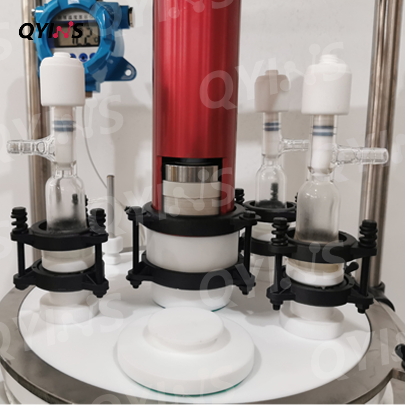 | 釜盖开口 | 四氟釜盖 共6口( 搅拌口,液体进料口,测温口,固体投料口,放气口、备用口)可定制 | ||||
