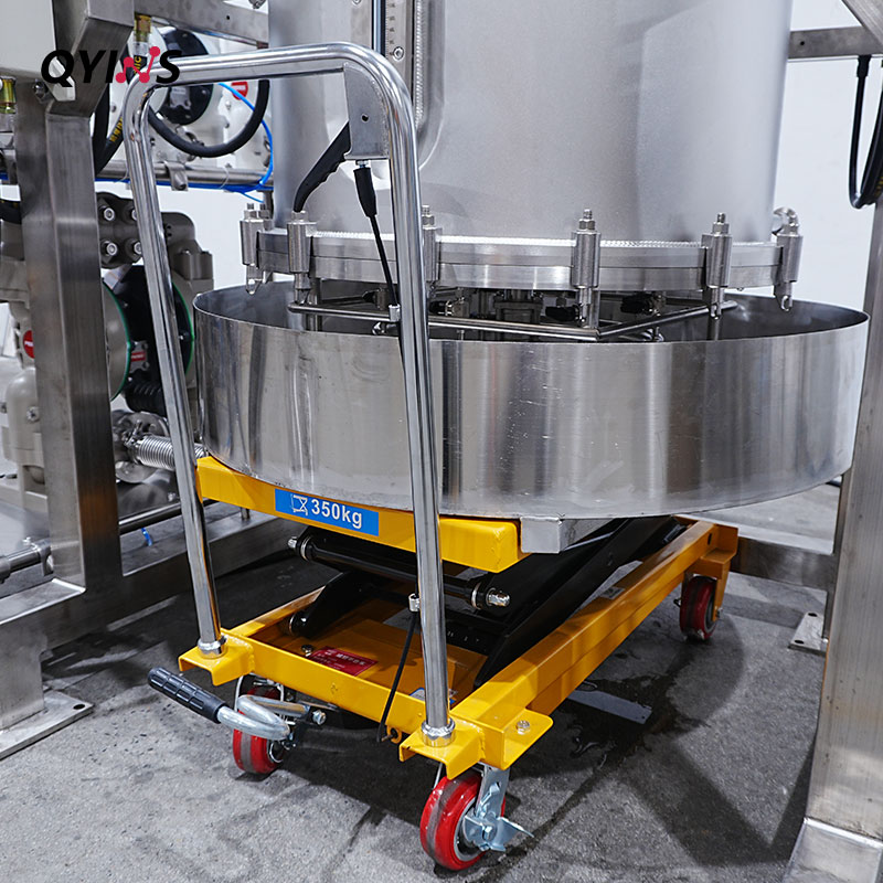 可移动升降接料小车+不锈钢托盘,辅助使用人员快速安装或拆卸过滤装置,便于收集固状粉状物料。