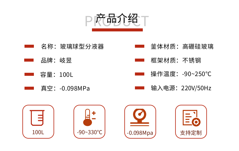本款球型分液器,采用高硼硅玻璃球型釜体,拥有良好的物理和化学性能。广泛适用于液液分离、制药提纯、精油提纯、香精提纯、新材料分离提纯、油类分离提纯等