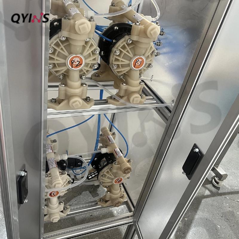 整条线采用PVDF气动隔膜,通过控制系统调节,可实现流体半自动进出料。